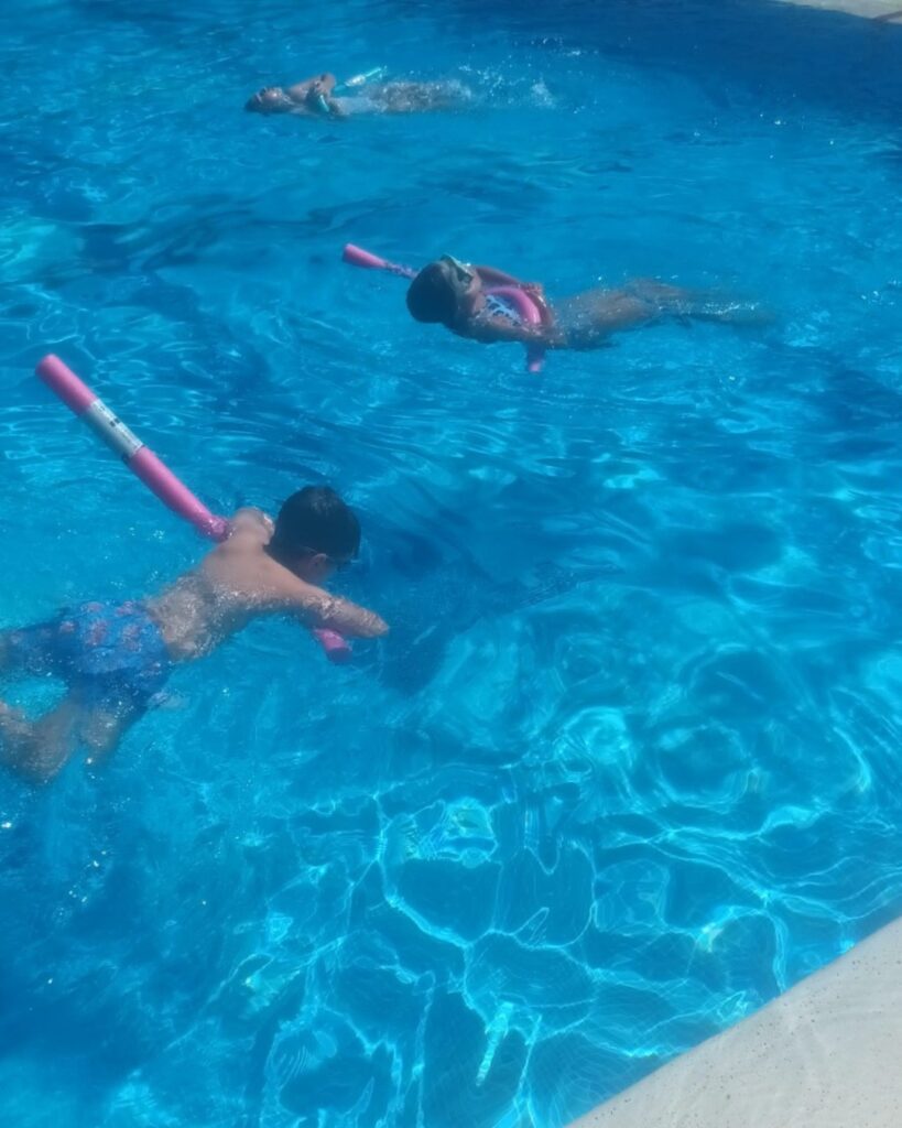 Durante estas semanas, los peques disfrutan, se lo pasan en grande y, sobre todo, aprenden a nadar o perfeccionan su técnica en un entorno seguro. Todo ello gracias a nuestros monitores, Ángel y Fran, profesionales comprometidos que hacen de cada sesión una experiencia más que llevadera.